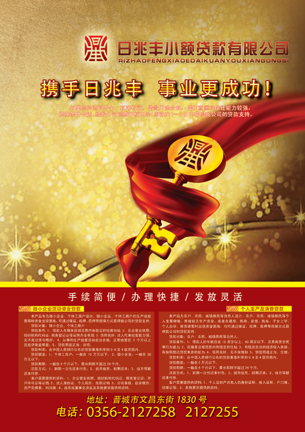 版权所有:泽州县日兆丰小额贷款有限公司 公司地址:山西省晋城市城区西环路3385号豪德一期55号楼 您是第